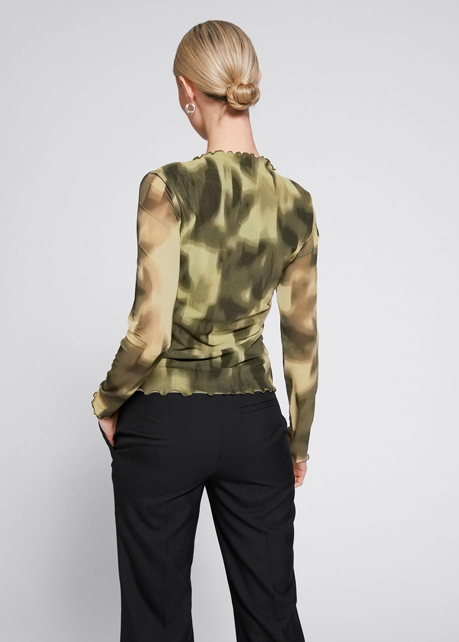 Other Stories Ruched Frilled Seam Mesh Top In Natural Lyst Uk