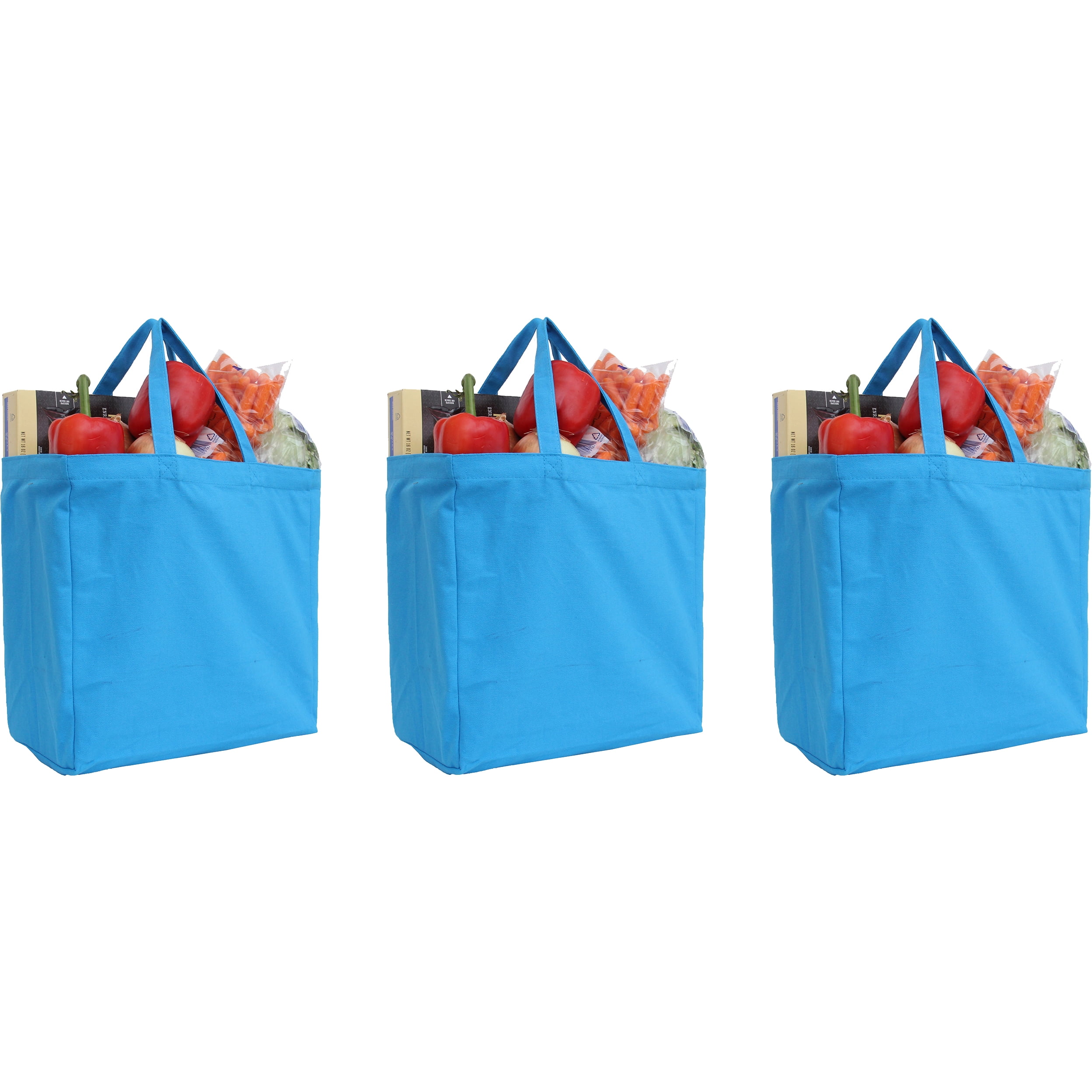 Reusable Heavy Duty 100 Cotton Canvas Grocery Bags Pack Of 3 With Strong Handles Holds Up To 50lbs Eco Friendly Large Size 14x14x7 5 Turquoise Walmart Com