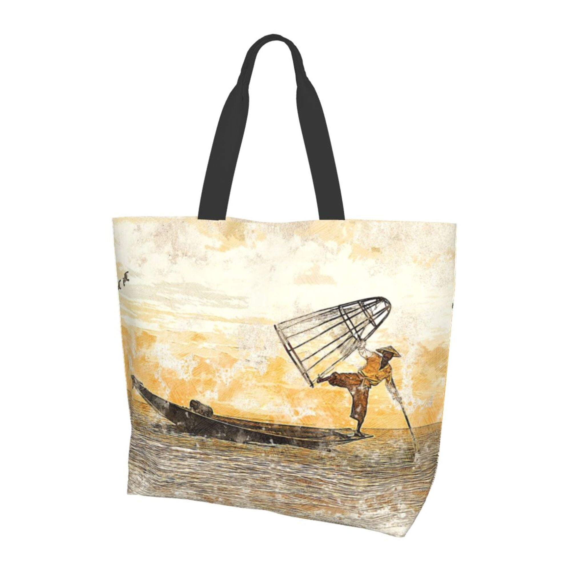Zicancn Canvas Tote Bag Aesthetic Fisher Man Person Grocery Bags Reusable Shopping Bags With Handles Durable Foldable Washable For Women Men Walmart Com